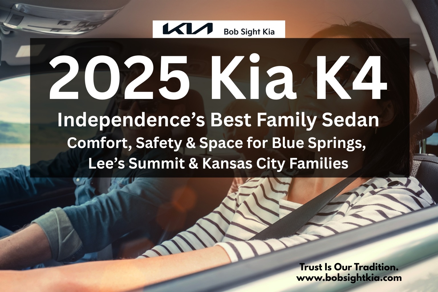 At Bob Sight Kia, our Price Match Promise (details here) ensures families get the best value, making it even easier to choose a sedan that balances affordability, reliability, and family-friendly features. Many Independence shoppers also compare the Kia K4 vs Hyundai Elantra, and with the K4’s advanced design, it stands out as the smarter choice.